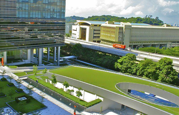 Mapletree Business City is a 1.7-million-square-foot Grade A office and business park space located at the fringe of Singapore’s Central Business District. The highlights of this project were the creation of a 1,521 square meter convex green roof over an amenity building that helps to reduce heat gain, complimenting arched green walls, and a comprehensive rainwater harvesting and automatic irrigation system that provides for the extensive landscape - all of which contribute significantly to the development’s energy savings. Manicured lawns interspersed with trees and a generous use of low shrubs further define the topography, creating lush views while retaining a sense of openness.