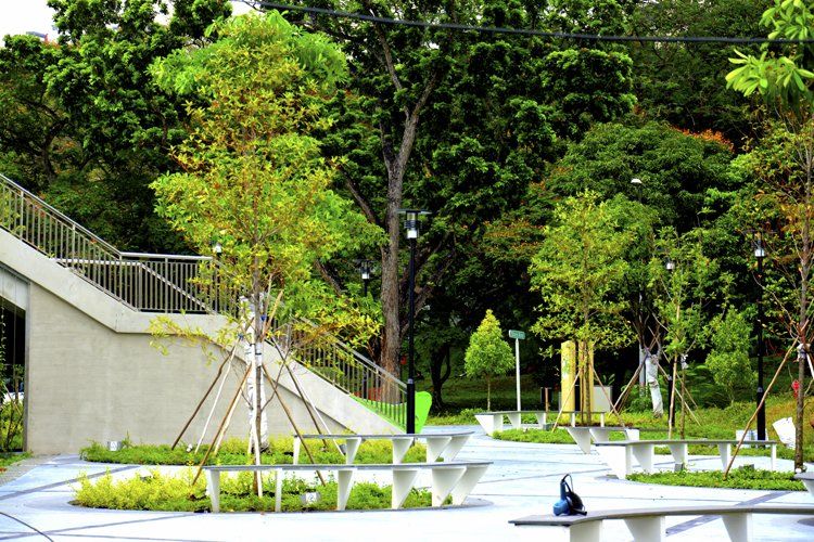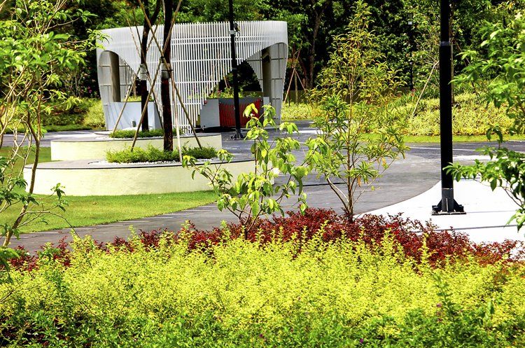 Singapore University of Technology and Design (SUTD) - Softscape works with installation of Jackie Chan Pavillions