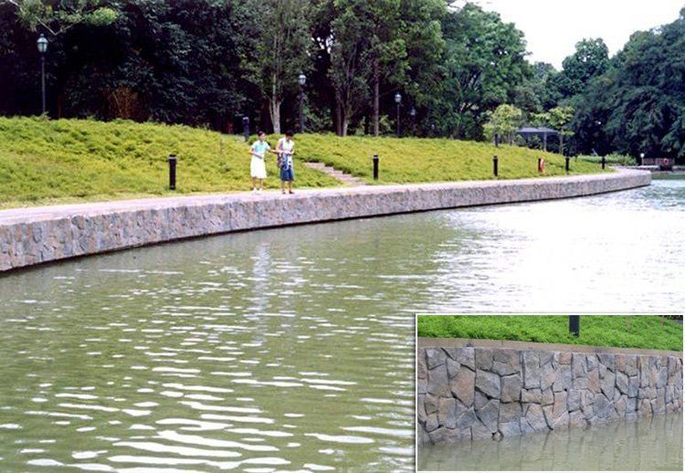 Marsh Bird Exhibit, Singapore Night Safari - Eco pond with simulated eroded earth embankment