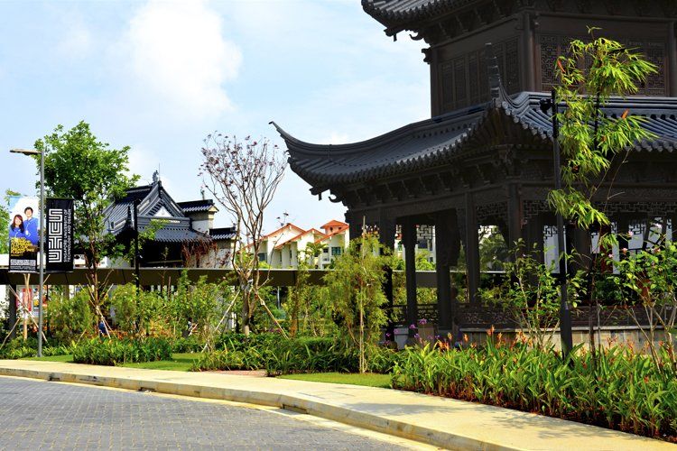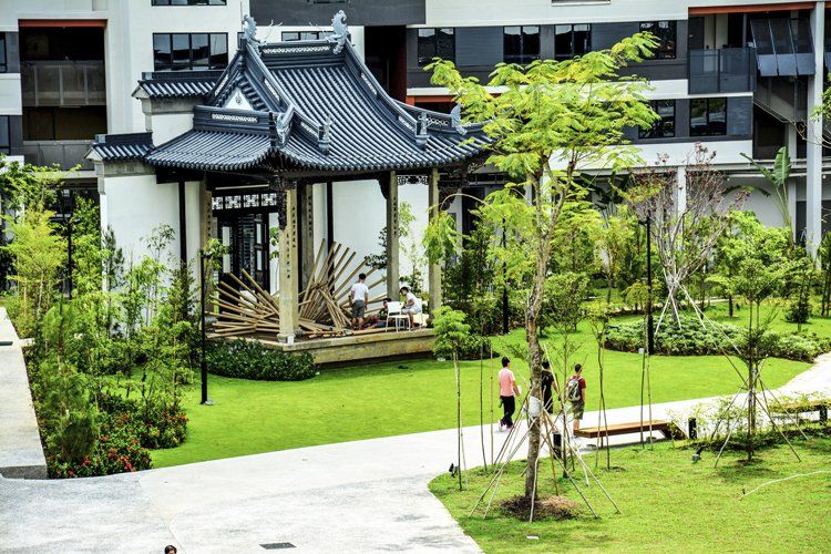 Singapore University of Technology and Design (SUTD) - Softscape works with installation of Jackie Chan Pavillions